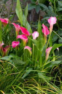• Také kalám (Zantedeschia) se dobře daří ve stínu. Jejich elegantní květy ve tvaru kalichu a lesklé listy dodávají zahradě či balkónu moderní vzhled. Zasaďte je do velkého květináče nebo je zkombinujte s trvalkami, abyste dosáhli zajímavého kontrastu.