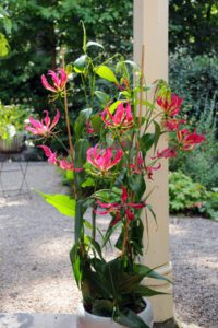 • Glorióza (Gloriosa neboli popínavá lilie) je skvělou volbou pro ty, kteří touží po exotickém nádechu. Ohnivé květy jako by se vznášely nad listím, čímž dodávají slunným i stinným místům hravý nádech.