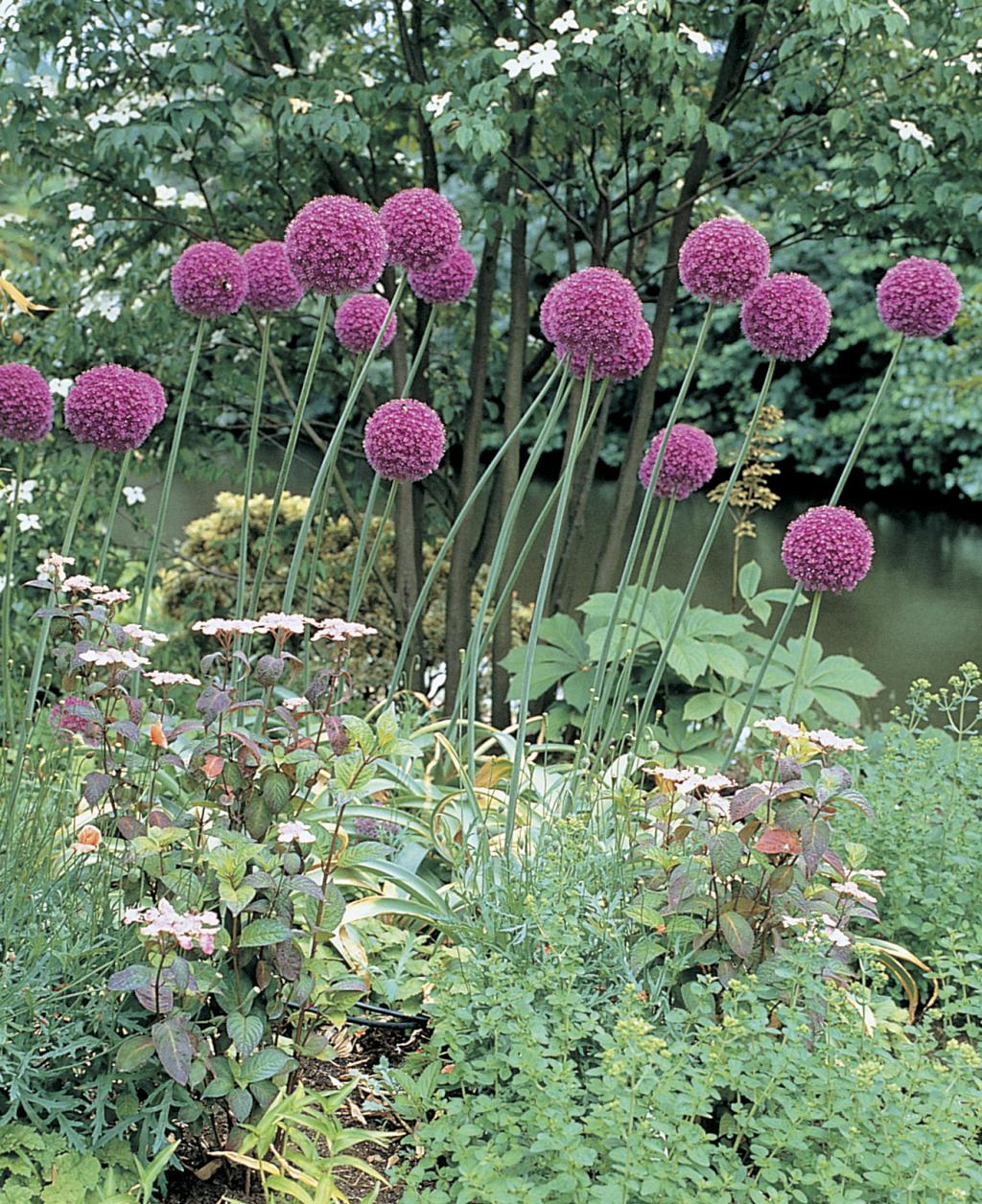 Jak již napovídá jeho název – obrovský – jedná se o jednu z nejvyšších odrůd česneků. Má pruhované modrošedé listy, které žel již při výkvětu začnou odumírat. Kulovité květenství se skládá z více než 100 kvítků a má průměr minimálně 20 cm. Malé skupiny po 3 až 5 cibulkách budou působit zvlášť atraktivně.